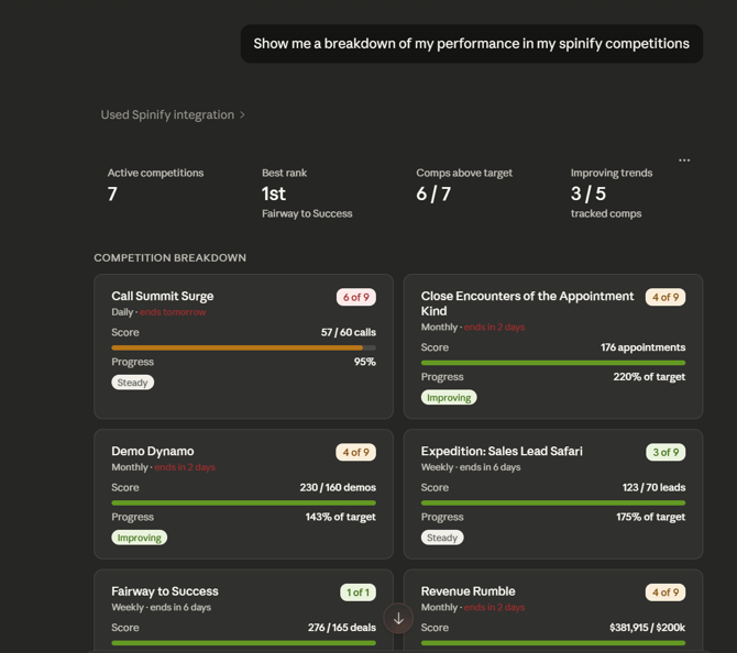 Claude will then get to work connecting with Spinify to gather insights, graphs, and advice to help you make the most of your Spinify experience, and get the best out of your performance!