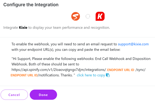 - Send an Email to support@kixie.com with your Endpoint URL(s) using the email template in the previous step.